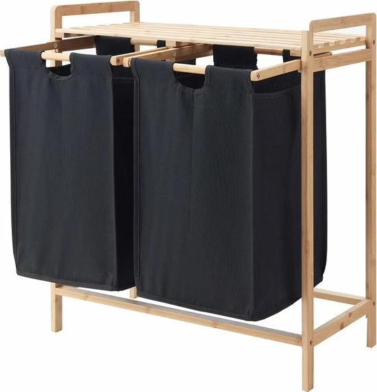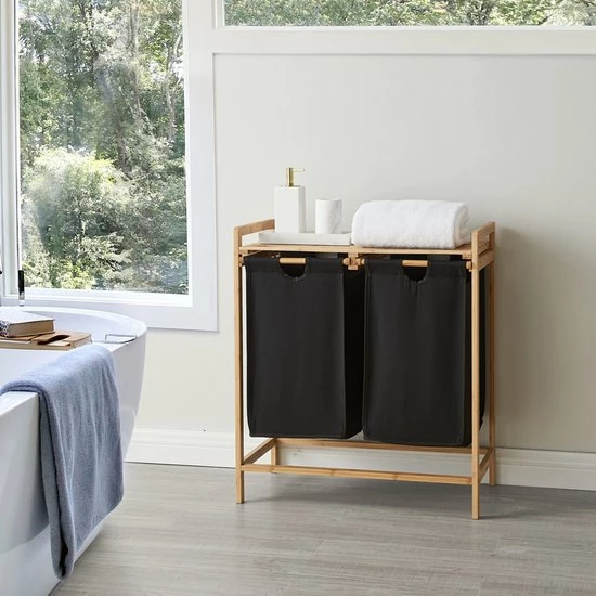 Deze stevige wassorteerder met uitschuifbare waszakken is zeer handig. De combinatie van bamboe en grijs geeft de wasmand een klassieke look. De vakken zijn niet enkel uitschuifbaar, maar u kan de waszakken ook losmaken van het frame. Het gebruik van bamboe en textiel zorgt bovendien voor een kwalitatief geheel!