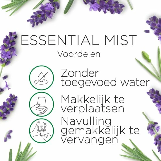 Air Wick Essential Mist Automatische Luchtverfrisser Ontspannende Lavendel navullingen verspreiden heerlijke geuren met etherische oliën in elke hoek van de kamer dankzij een unieke technologie.