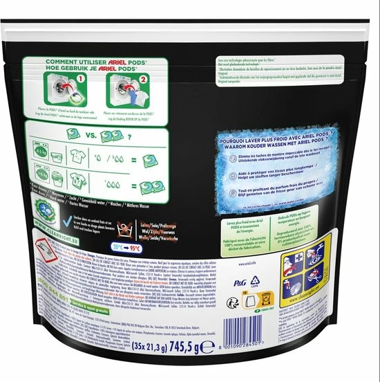 - Recyclebare verpakking: Ariel All-in-1 Pods wasmiddelcapsules worden geleverd in een recyclebare verpakking