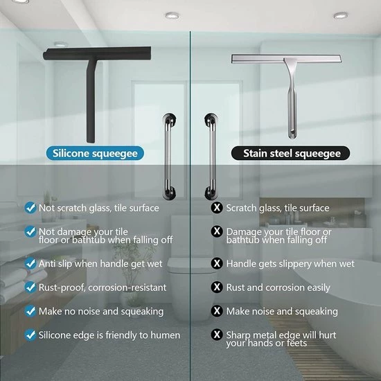 Dankzij het gemakkelijke ophangsysteem is je badkamer ook direct opgeruimd na gebruik. Je hebt geen schroeven nodig om de raamwisser op te hangen, dat is wel zo fijn!