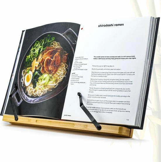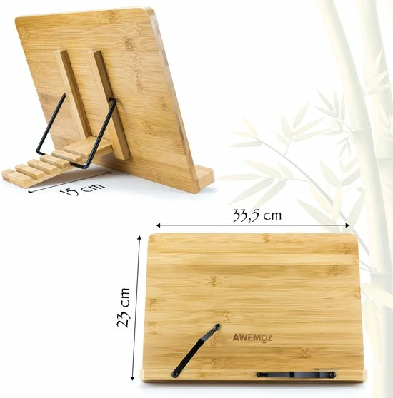 Lees makkelijk recepten af in de keuken of kijk gemakkelijk je favoriete serie met deze boeken/tabletstandaard van AWEMOZ! Multifunctionele boekenstandaard; gebruik het als boekenhouder, kookboekenstandaard, tabletstandaard, lightpad houder of als houder om te schilderen, tekenen of decoreren. Gemaakt van bamboe hout, is professioneel afgewerkt en tevens voorzien van lak. Dit geeft deze kwalitatieve boekenstandaard een luxueuze uitstraling.