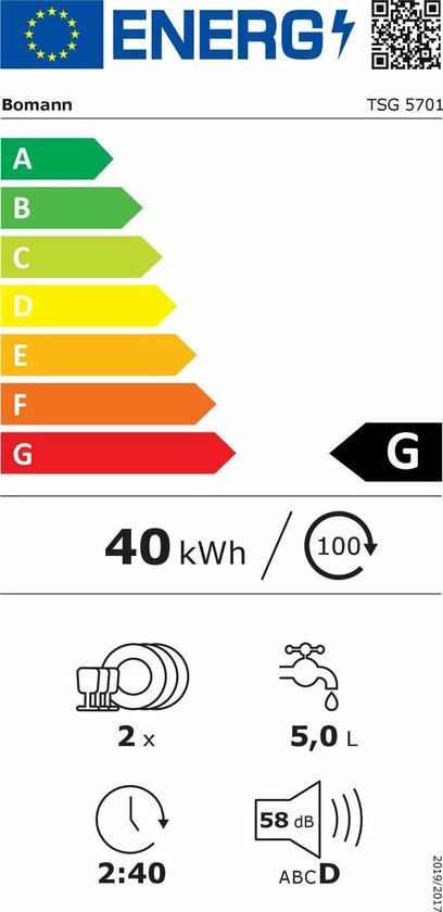 - Energieverbruik per 100 bedrijfscycli: 40 kWh