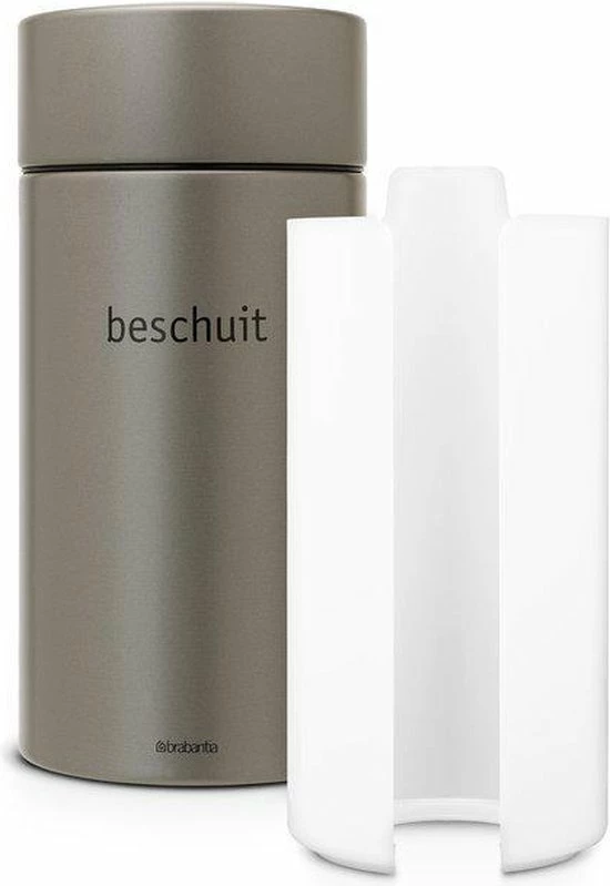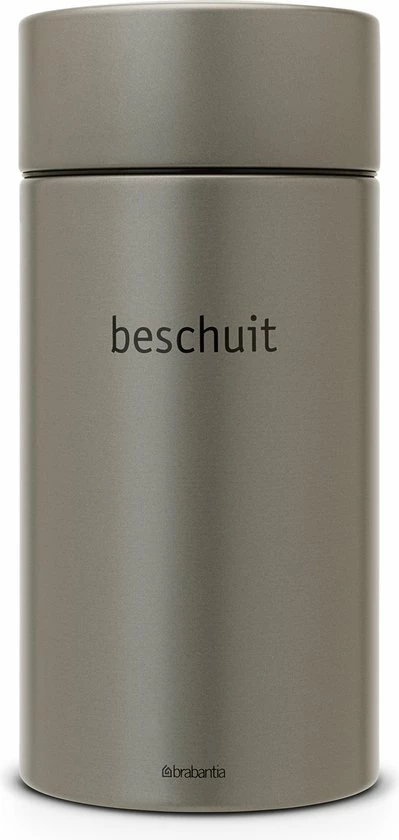 Deze Brabantia Beschuitbus met een inhoud van 1,7 liter is gemakkelijk in gebruik dankzij de handige lift! Je schuift de beschuitjes zo naar boven. De aromadichte ‘klik’-deksel zorgt er voor dat de inhoud langer vers blijft.