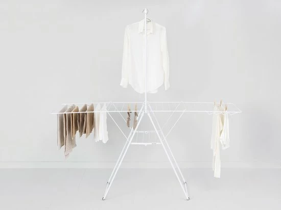 Bespaar tijd en energie door je was natuurlijk te drogen en bespaar ruimte door het met dit slimme rek te doen! Dankzij de slimme stang, 25 meter droogruimte en 8 haken voor kleerhangers heb je op dit Brabantia HangOn Droogrek alle ruimte. Alles droog? Klap ‘m eenvoudig in tot een klein pakketje en berg ‘m op. Laat die wasdroger dus maar hangen!