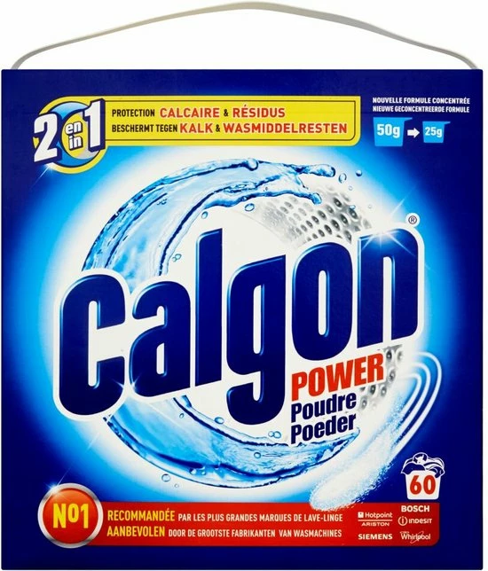 - Bevat 1,5 kg Calgon 3 in 1 Power Poeder. Goed voor 60 wasbeurten.