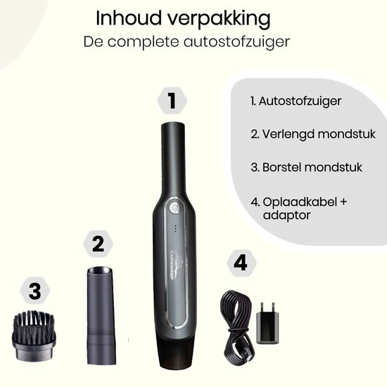 Bent u op zoek naar een krachtige snoerloze autostofzuiger die daarnaast ook nog gemakkelijk op te bergen is in uw auto? Dan heeft u deze nu gevonden!