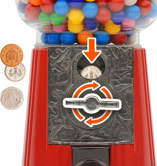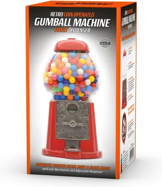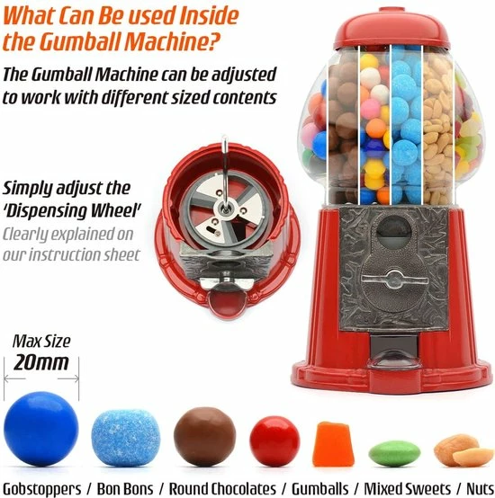 Deze klassieke kauwgomballen machine in rode retrostijl uit het verleden is een geweldig cadeau voor kinderen of elke retro-liefhebbende volwassene. Ervaar de ouderwetse snoepautomaat gumball machine, deze dispenser in antieke stijl is 11 “hoog en is perfect voor het uitdelen van snoep en lekkernijen tot 20 mm.