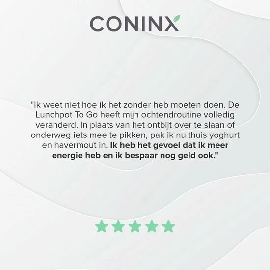 De Coninx yoghurtbeker to go is ideaal voor het meenemen van een gezonde maaltijd. De lunchbeker bestaat uit twee delen, waardoor je eenvoudig eten als yoghurt en ontbijtgranen kunt scheiden. De muesli beker heeft een 100% lekvrij ontwerp en is gemaakt van duurzaam en BPA-vrij materiaal. Trakteer jezelf of geef de lunchpot aan iemand anders cadeau. De yoghurtbeker is zowel vaatwasserbestendig als vriezerbestendig. Perfect voor onderweg en verkrijgbaar in 5 verschillende trendy kleuren.