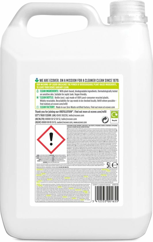 - Andere beschikbare Ecover Vloeibare Afwasmiddelen: Kamille & Clementine, Lelie & Lotus, Granaatappel & Vijg en ZERO (0% geurstoffen en 0% kleurstoffen).
