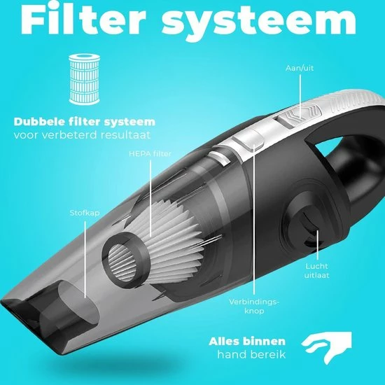 Deze handstofzuiger is speciaal ontworpen en beschikt over meerdere opties die jij nodig hebt. De vacuumcleaner maakt onder andere jouw auto brandschoon en komt op alle moeilijk te bereiken plekken.