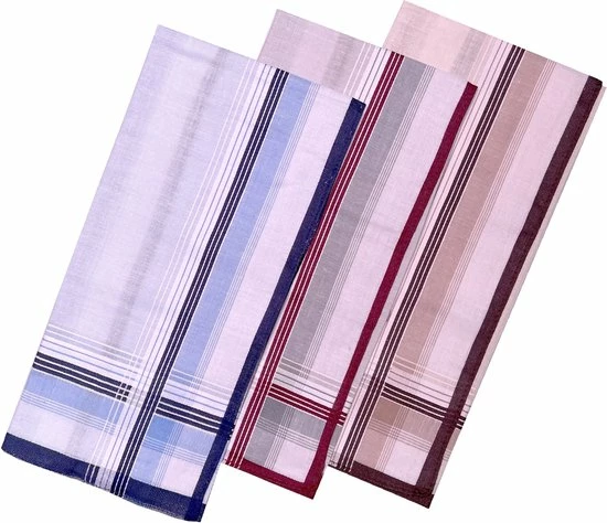 Een goede kwaliteit zakdoek voor een schappelijke prijs. Deze 100% katoenen zakdoeken zijn verkrijgbaar in diverse designs en worden geleverd in een verpakking met drie verschillende kleuren. De zakdoeken kunnen worden gewassen op 60°. Natuurlijk ook leuk om cadeau te geven.