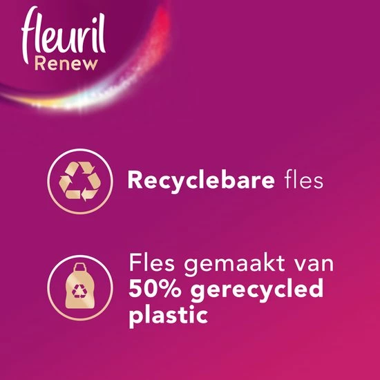 Fleuril zorgt voor je kleding & voor de planeet: De wasmiddel formule bestaat uit ingrediënten waarvan meer dan 90% een natuurlijke oorsprong heeft*. De fles is gemaakt van 50% gerecycled plastic en is 100% recyclebaar. Het is belangrijk om de wasvoorschriften in uw kleding te volgen voor het beste wasresultaat.