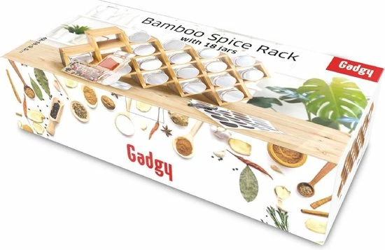 Mooi en handig, deze complete set van Gadgy Kruidenrek met 18 Kruidenpotjes. Met dit mooie bamboe kruidenrek heb je altijd al je kruidenpotjes geordend en binnen handbereik.