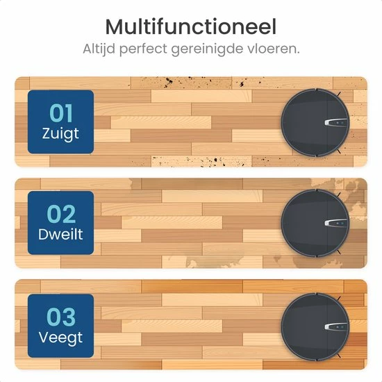 · Stofzuigen & dweilen – De vloer wordt dankzij deze robotstofzuiger tegelijkertijd gestofzuigd én gedweild. Jouw vloer is hierdoor schoner dan ooit tevoren!