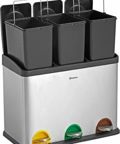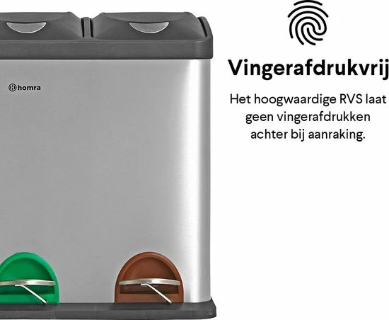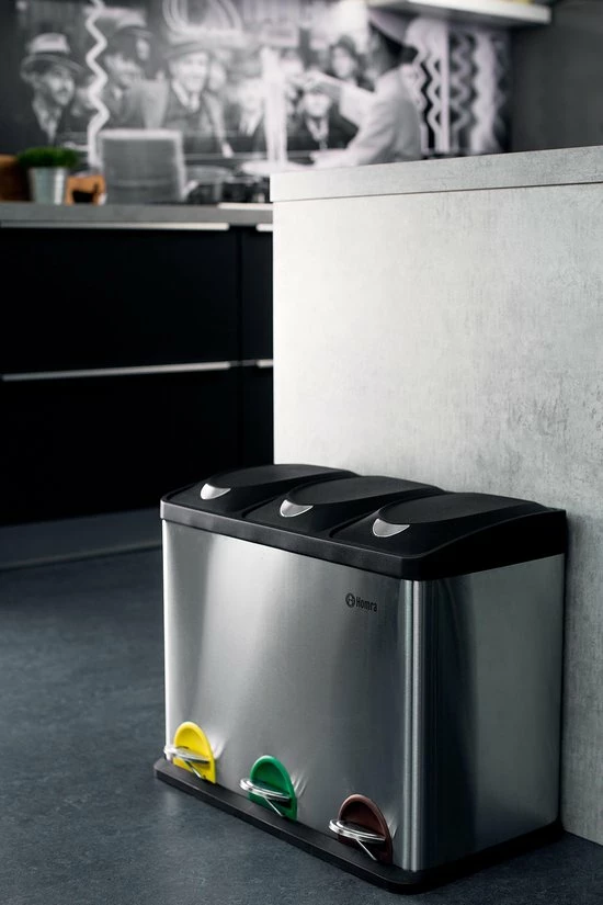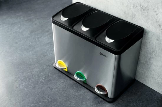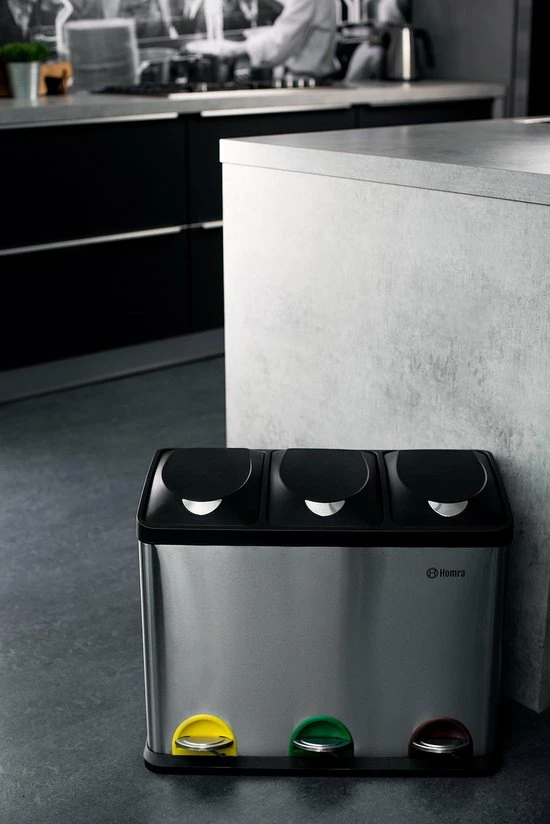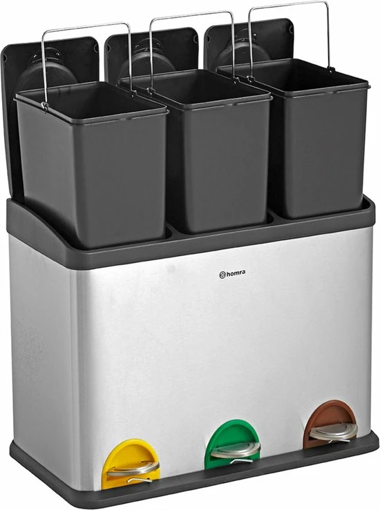 De Homra recycle afvalemmer beschikt over 3 losse bakken van 15 liter per bak. Ideaal voor afval scheiden – afvalscheiding. Elke binnen emmer beschikt over een handvat waarmee deze makkelijk uit de bak getild kan worden om te ledigen of te reinigen.