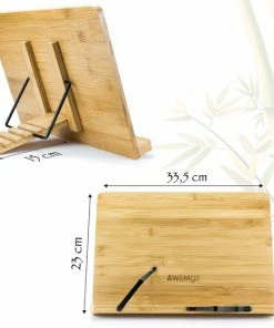 Coupon ✨ AWEMOZ Boekenstandaard Duurzaam Bamboe Hout – Boekenhouder – Kookboekstandaard Met Bladzijden Houder– Leesstandaard - Tablet Standaard – Verstelbaar In 6 Standen & Inklapbaar - Boekensteun - Cadeau Voor Man & Vrouw ????