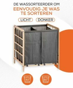 Hete verkoop ???? Merkloos Bamboe Wasmand Met Deksel, Katoenen Zak En Handvaten – 72L – Zwart ????
