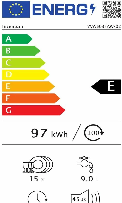 De luxe Inventum vrijstaande vaatwasser VVW6035AW is geschikt voor 15 couverts, heeft een digitaal display, een ergonomische besteklade en een in hoogte verstelbare bovenkorf. Deze vaatwasser met energie-efficiëntieklasse E verbruikt per wasbeurt slechts 9 liter water. Je hebt de keuze uit zes programma’s, waaronder een eco-programma en een hygiëne programma voor erg vuile vaat. Heb je een keer weinig vaat, kies dan voor de optie halve belading. Het gekozen programma wordt dan sneller en minder intensief gedraaid, waardoor je tijd, energie en water bespaart. Daarnaast is het met de uitgestelde start mogelijk om het gekozen programma tot 24 uur later te laten starten. Omdat veiligheid voorop staat, heeft deze vaatwasmachine een roestvrijstalen kuip en een aquastop. Wateroverlast is daarmee voorgoed verleden tijd!