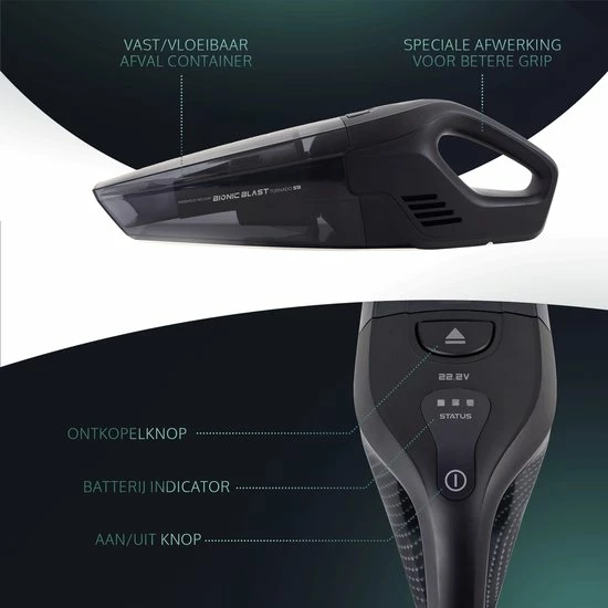 De Tornado S3 is voorzien van 22,2V Blast Tornado technologie. Hierdoor kun jij zonder enig probleem ieder vuil, vast of vloeibaar, opzuigen.