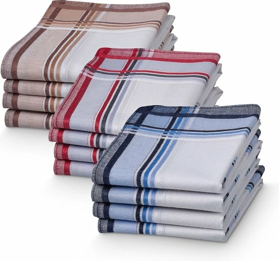 - DETAILS: Je ontvangt 12 katoenen zakdoeken van 40cm bij 40cm, in drie verschillende kleuren.