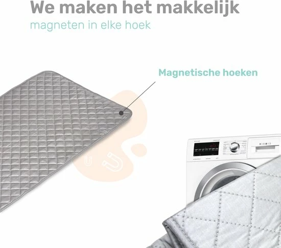 - 4 hoekmagneten voor een comfortabele bevestiging op wasmachine of droger. De afmeting van de mat is geschikt voor alle soorten wasmachines: (85 * 50 cm)
