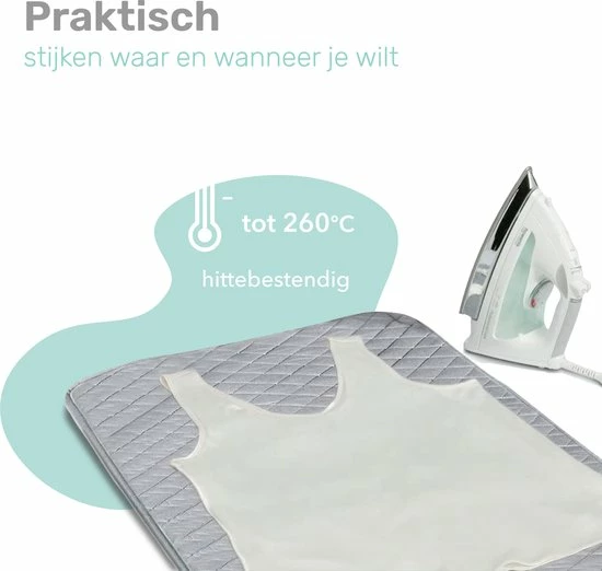 - Warmte-isolerende extra dikke strijkmat transformeert alle vlakke oppervlakken in een strijkplank.