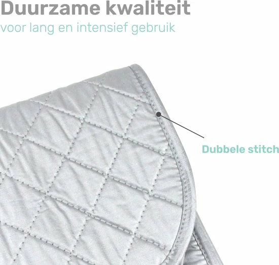 - Metalen oppervlak reflecteert warmte voor sneller strijken. Speciaal materiaal voor geavanceerde prestaties: gemetalliseerde katoenen stof, molton, gemagnetiseerd ijzer