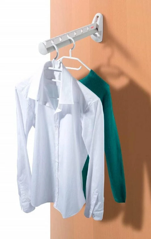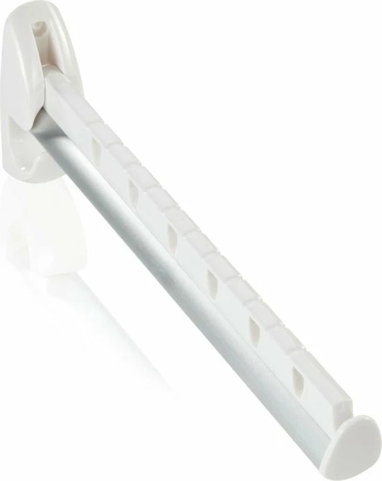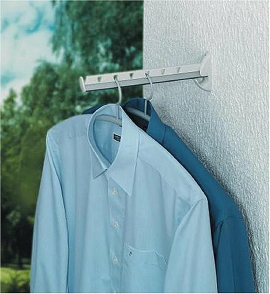 Met zijn lengte van 31 cm biedt de ruimtebesparende Leifheit kledingstang Airette plek voor 7 kledinghangers. Na gebruik klap je de Airette plaatsbesparend tegen de wand. Deze kledingstang, van weerbestendig en stabiel kunststof met een buis van hoogwaardig aluminium, is geschikt voor binnen en buiten. Gemakkelijk op te hangen, pluggen en schroeven worden meegeleverd.
