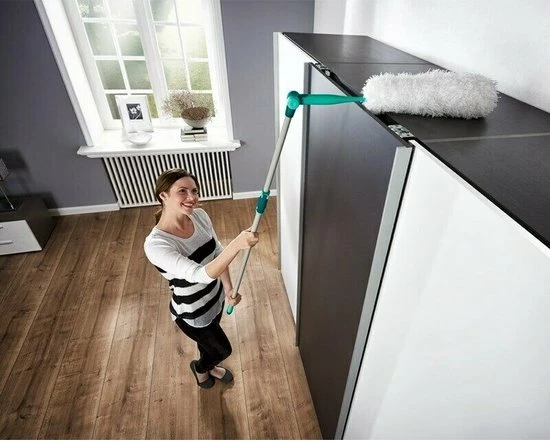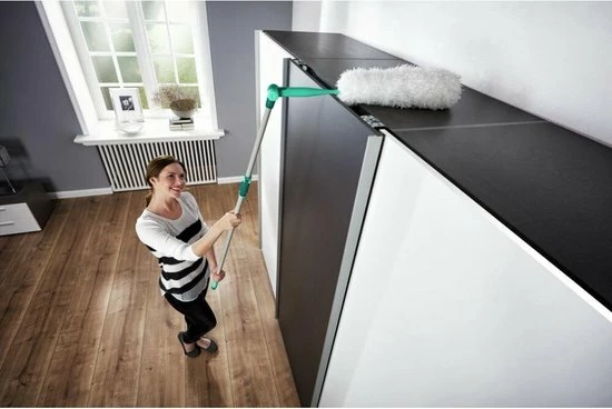 Stofvrij in een paar seconden: voor de lange stoffer Duster XL een kinderspel, die trekt zelfs het fijnste stof magnetisch aan. De antistatische, superdicht microvezels houden het stof vast en voorkomen zo dat stofdeeltjes alleen maar worden weggeveegd en weer op andere plaatsen neervallen. Zijn zacht vezels glijden daarbij in elke spleet en elke oneffenheid. Ze ontdoen kamerplanten net zo makkelijk van stof als boekenkasten of jaloezieën. Ook zeer kwetsbare oppervlakken, zoals computer- of televisieschermen kan de Duster XL zacht maar goed reinigen. De Duster XL beschikt over een extra lang reinigingsoppervlak van 38 cm, dat ideaal geschikt is voor het reinigen van grote en gladde oppervlakken, zoals tafels of beeldschermen. De greep maakt het gebruik van een Leifheit Click-systeem-steel met telescoopfunctie mogelijk, die bij gebruik van de Duster XL tot in de verste kamerhoeken kan komen. Met ophangmogelijkheid voor praktisch opbergen.