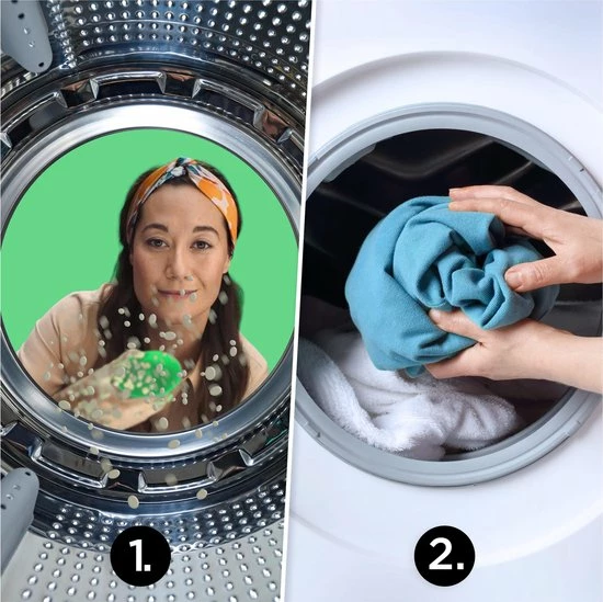 - Leg de parels direct in de lege trommel voordat je je was erin doet