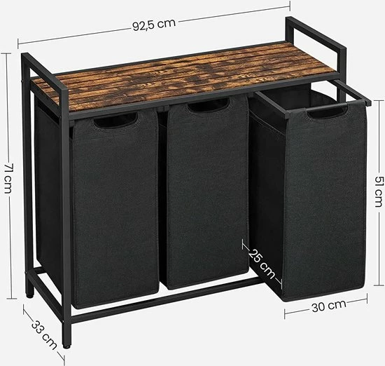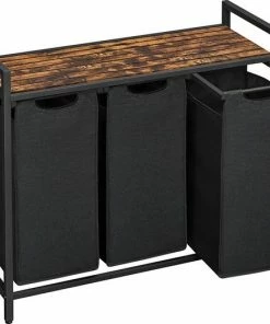 Promo ???? Livingsigns Wasmand, Wasverzamelaar, 3 Vakken, Met Legbord, Wassorteerbak, Waszak Uitschuifbaar En Uitneembaar, Per Waszak 38 Liter, Voor Badkamer, Wasruimte, Vintage Bruin-zwart ????