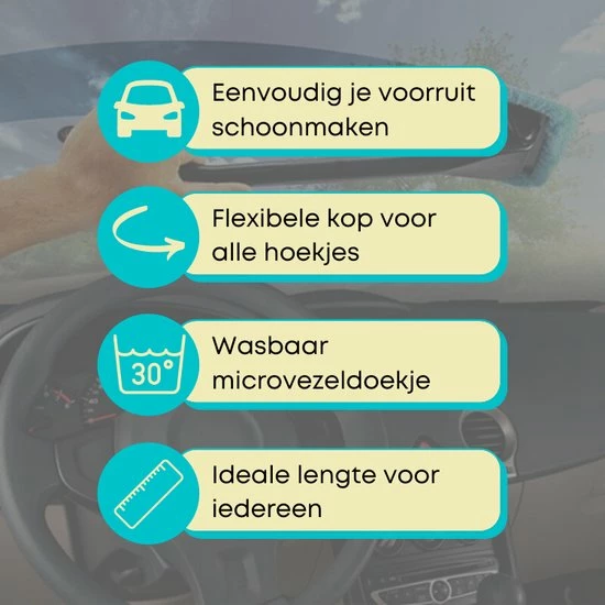 Door de flexibele draaikop van de raamwisser wordt het mogelijk om zonder moeite het gehele raam vrij van condens te maken. Je veegt rechtop zittend je autoruit binnen enkele seconden schoon en gaat veilig de weg op. Ook voor mensen die wat minder flexibel zijn is de raamwisser het ideale hulpmiddel om de beslagen auto ruit vrij te maken van condens. Is het condens doekje vies geworden door veelvuldig gebruik? Verwijder het condens doekje en gooi hem in de wasmachine, daarna is hij weer als nieuw!