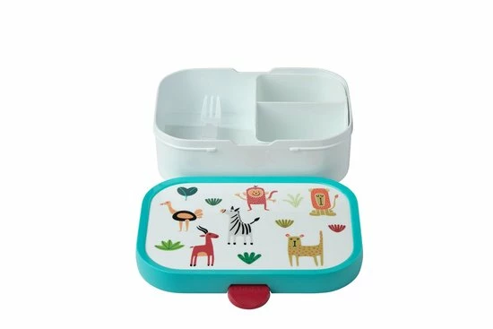 Helemaal klaar voor een nieuwe schooldag met de lunchset met Animal Friends print van Mepal. Deze handige set bestaat uit een pop-up drinkfles en een lunchbox midi, voorzien van bento box en vorkje. De drinkfles voor kinderen is ideaal; druk en drink, dat is het principe. De fles is gegarandeerd lekvrij en ook makkelijk door kleine kinderhandjes te gebruiken. De bento lunchbox biedt ruimte aan maximaal 4 boterhammen en wordt inclusief bentoboxje en fruitvorkje geleverd. Zo wordt variatie rond de lunch écht kinderspel! Verras jouw zoon of dochter bijvoorbeeld eens met wat snoeptomaatjes tijdens de lunch of geef ze eens een stukje kaas of worst mee. De mogelijkheden worden bijna eindeloos! Dat wordt iedere dag een beetje extra genieten. Extra fijn voor papa en mama: zowel de pop-up drinkfles als de broodtrommel voor kinderen mogen gewoon in de vaatwasser.