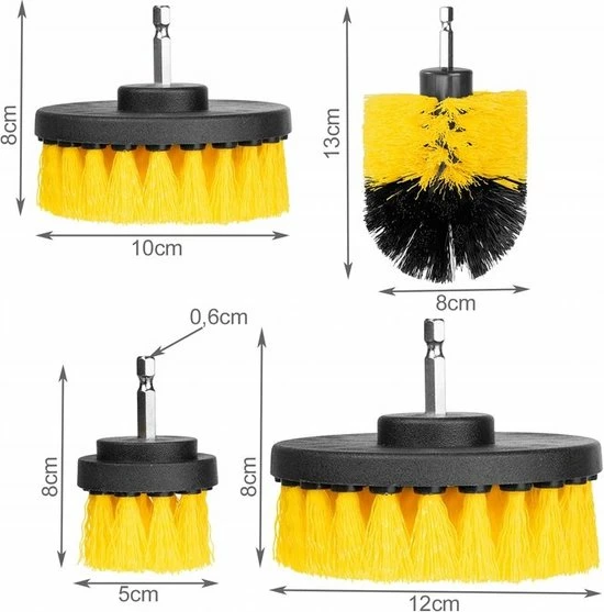 Met een set borstels die je gewoon op de boormachine plaatst, wordt je reiniging ongebruikelijk, maar zeer effectief! Je reinigt alle moeilijk bereikbare plekken zoals diverse voegen, bekleding, autowielen of diverse versleten materialen.