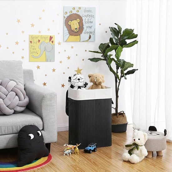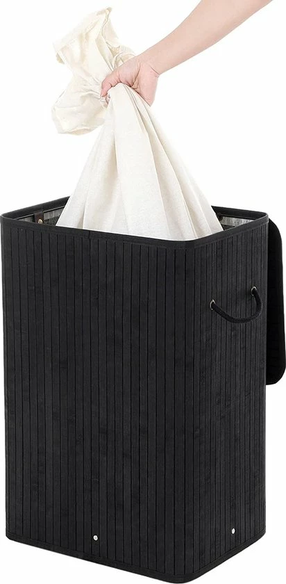 ▶ Stevige, maar lichte constructie: De wasmand is gemaakt uit natuurlijk bamboe met ijzeren verstevigingsdraad.
