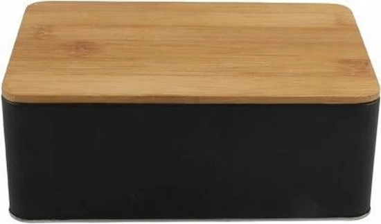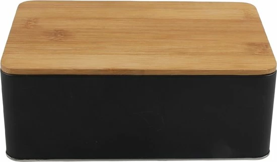 Zwart Opbergblik – m/bamboe deksel – 19x13x7.2cm