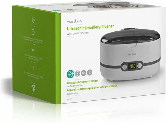 Reinig uw juwelen met deze ultrasone reiniger. De sonische geluidsgolven trillen met 43 kHz, wat ervoor zorgt dat al het stof en vuil zorgvuldig wordt verwijderd. U hoeft alleen maar uw juwelen in de tank van 600 ml te leggen en het apparaat te starten. Zelfs die moeilijke hoekjes worden perfect schoon. Met de digitale timer kunt u de reinigingstijd op 1,5 tot 8 minuten instellen. Door het transparante deksel kunt u zien hoe uw juwelen worden gereinigd. Laat uw kostbare sieraden, juwelen en zelfs brillen weer glanzen en als nieuw worden!