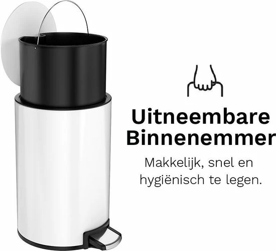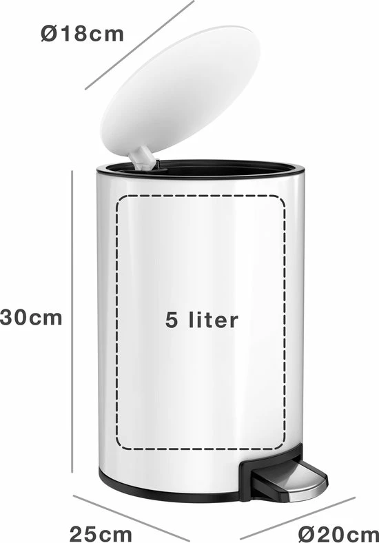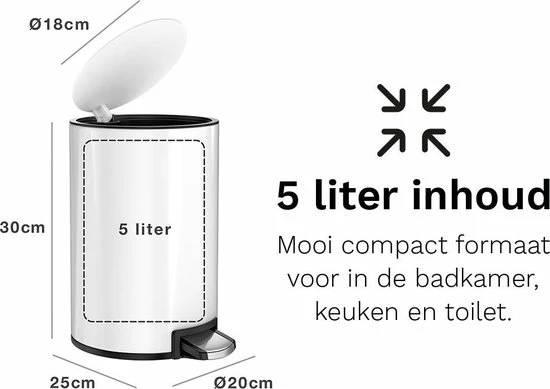 - CAPACITEIT – De prullenbak heeft een inhoud van 5 liter en is perfect voor op de badkamer!