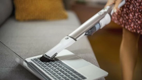 De slanke, compacte stofzuiger kan helemaal plat op de vloer om onder lage meubels en in lastige hoeken te komen.