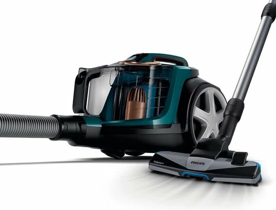 De PowerCyclone 8-technologie zorgt voor de continue hoge zuigkracht. Het aerodynamische ontwerp van de cyclonische kamer vermindert de luchtweerstand en zorgt in 3 zeer efficiënte stappen voor optimale schoonmaakresultaten: 1) Dankzij de rechte, egale luchtinlaat gaat de lucht snel de PowerCyclone in. 2) De gebogen luchtdoorlaat versnelt de opgaande luchtstroom in de cyclonische kamer. 3) Boven in de cyclonische kamer wordt de stof effectief van de lucht gescheiden door de uitlaatbladen.