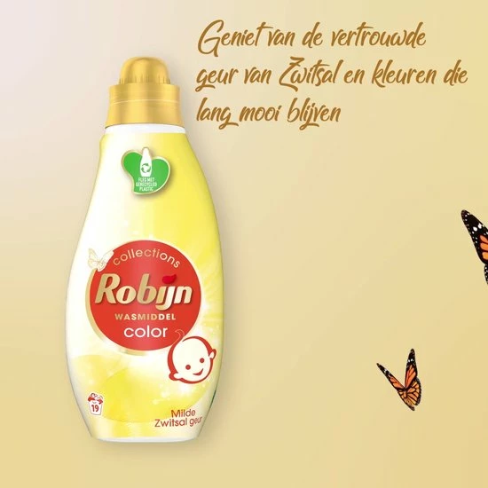 Robijn Klein & Krachtig Collections is een extra geconcentreerd wasmiddel en dus beter voor het milieu. Robijn gebruikt verbeterde en mooiere wasmiddelflessen die ervoor zorgen dat je nog beter kunt schenken en dat de flessen niet lekken. Bovendien zijn de flessen gemaakt van 70% gerecycled plastic en zijn ze 100% recyclebaar. Op deze manier draagt Robijn bij aan een duurzamere manier van wassen.