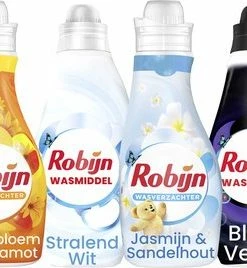 - Een vloeibaar wasmiddel en wasverzachter uit de Robijn Collections lijn