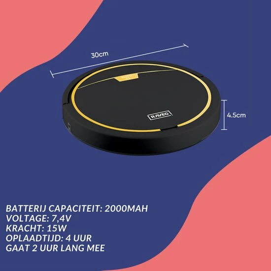 Ben je op zoek naar een hoogwaardige robotstofzuiger, waarmee je zowel kan vegen, stofzuigen en dweilen? Dan heb je gevonden wat je zocht! De robotstofzuiger van RAVEG is de ideale uitkomst om efficiënter met je vrije tijd om te gaan. De stofzuiger beschikt over een subliem afwerkingsniveau en je kan het eenvoudig bedienen doormiddel van uw mobiel, of een afstandsbediening.