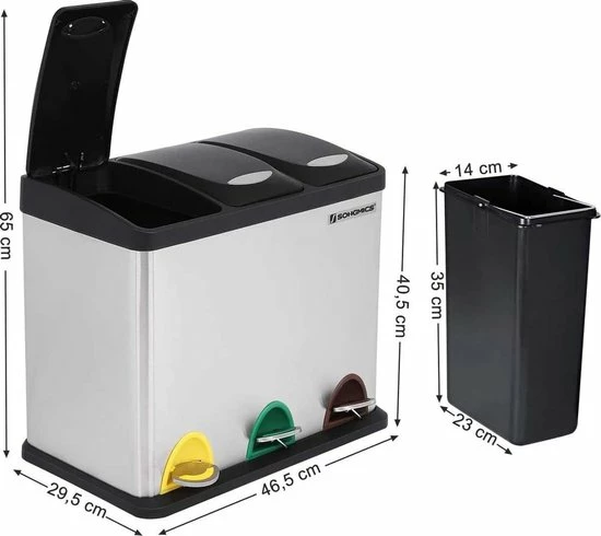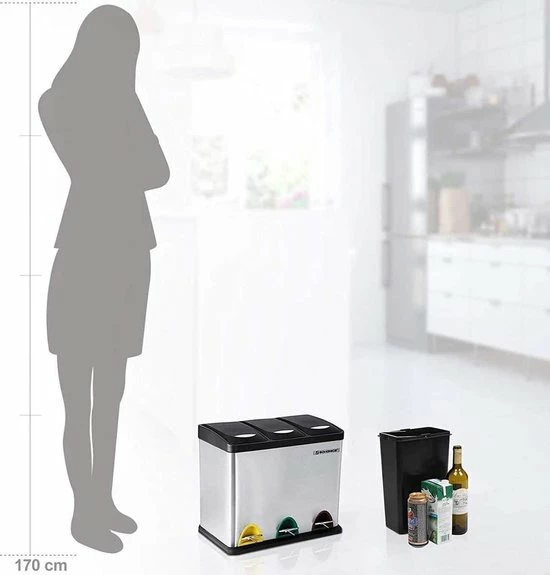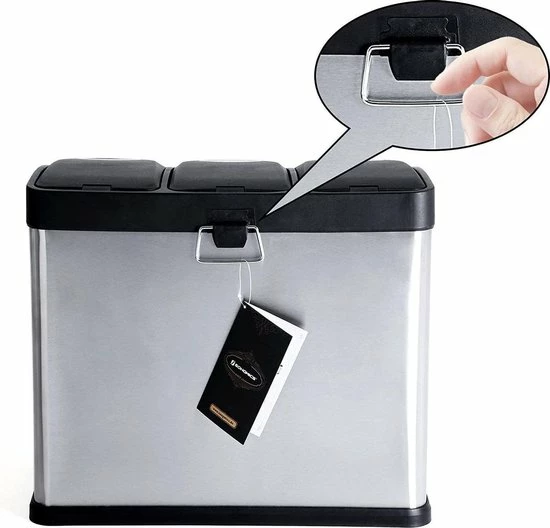 • Wat je krijgt: Een moderne afvalbak met 3 compartimenten, waarmee u uw afval gemakkelijk kunt sorteren. Dus trakteer jezelf op deze afvalbak en creëer een schoon huis