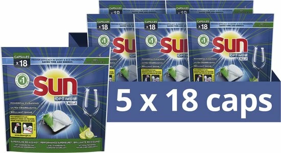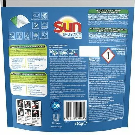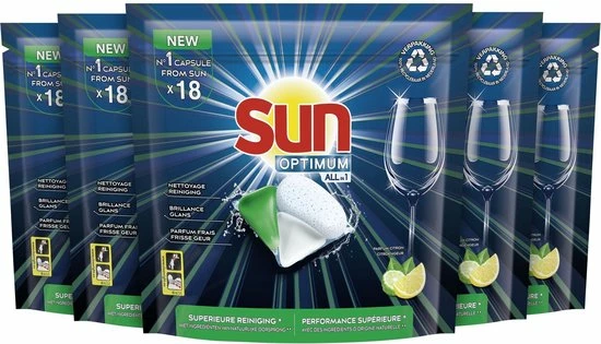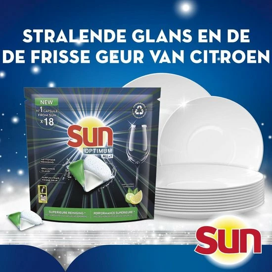 - Sun Optimum All-in 1 vaatwascapsules voor een superieure reiniging en glans