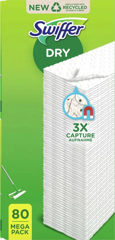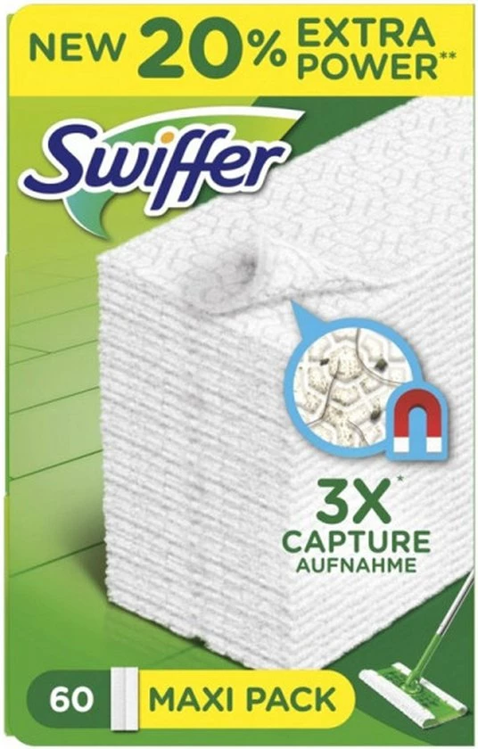 Swiffer navuldoekjes dienen te worden gebruikt met de Vloerreiniger om vuil, stof en haar op elk vloeroppervlak in je huis te vangen en vast te houden. 3x beter dan een gewone bezem. Hij kan ook worden gebruikt ter aanvulling van je stofzuiger, om het fijne overige stof op te vangen of als schoonmaakmiddel tussendoor, een truc om te voorkomen dat je te veel grondig schoonmaakt. Hoe? Waarom? Dankzij de dikte en het specifieke patroon van de stofdoekjes en hun antistatische werking vangt en houdt het doekje al het stof vast. Bovendien kan je met de 360° beweegbare kop van de Swiffer Vloerreiniger overal schoonmaken, zelfs op moeilijk bereikbare plekjes zoals onder de koelkast, het fornuis en de vaatwasser, onder bedden en banken en zelfs in hoeken en randen waar bezems en dweilen niet bij kunnen. Dat is toch geweldig? Met de Swiffer droge stofdoekjes gaat schoonmaken sneller en gemakkelijker dan ooit. Handige tips: Ze zijn vooral handig om het haar van je huisdieren, dat constant uitvalt, te verwijderen of als je last hebt van een stofallergie. De Swiffer doekjes kunnen worden gebruikt op elk hard oppervlak, zoals: al dan niet geboend linoleum, vinyl, keramische tegels en behandelde houten vloeren.