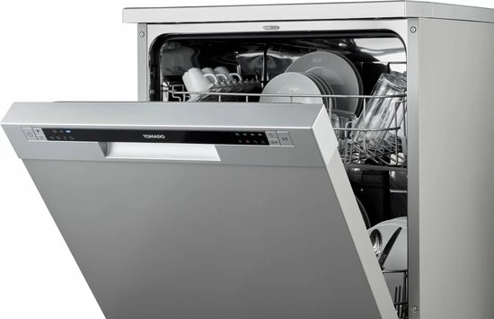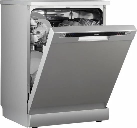 De Tomado TDW6001S vaatwasser heeft energielabel E en biedt jou de keuze uit 6 wasprogramma’s. De bovenkorf is verstelbaar, waardoor je meer ruimte in de onderkorf kunt creëren. De vaatwasser biedt ruimte voor 12 couverts en is voorzien van een bestekmandje, maar heb je net niet genoeg afwas voor een wasbeurt? Hij beschikt over een programma voor halve belading, waar hij automatisch het waterverbruik op aanpast. Zo draag je ook nog een steentje bij aan het milieu. Deze vaatwasser is vrijstaand waardoor je hem kunt plaatsen waar het jou het beste uitkomt. Door gebruik te maken van de uitgestelde start bepaal je zelf wanneer het programma begint. Profiteer ‘s avonds van voordelige energietarieven; wanneer je ‘s ochtends wakker wordt is de vaat klaar.
