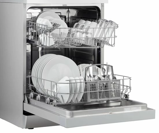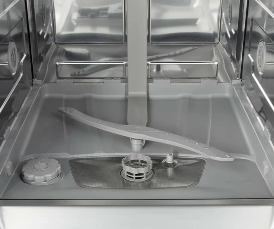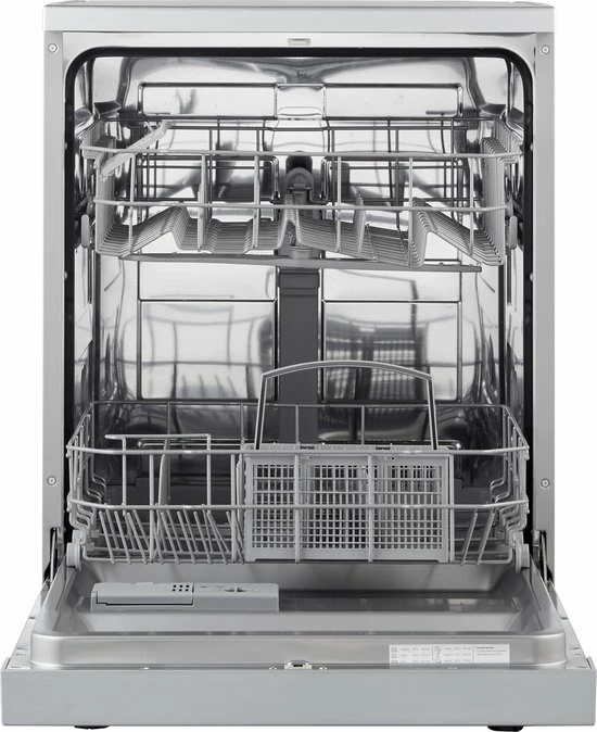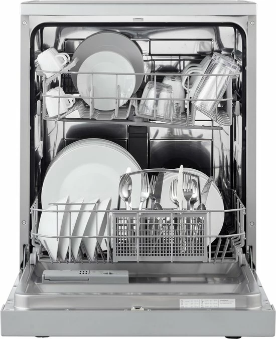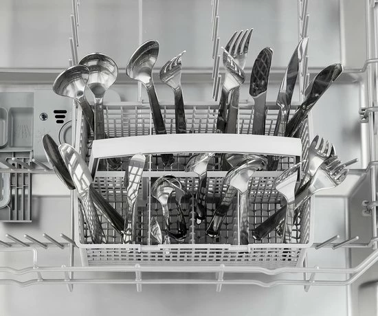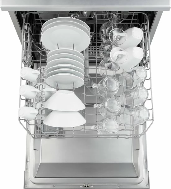 Aan de voorkant van de vaatwasser bevindt zich het bedieningspaneel. Je kunt de vaatwasser bedienen door middel van knoppen. Op het bedieningspaneel krijg je dan te zien voor welk programma je hebt gekozen. Je kunt hier ook kiezen voor de functie kinderslot. Zo weet je zeker dat de kleintjes niet zomaar de vaatwasser open kunnen trekken. Heb je grotere of hogere borden? Deze kan je gemakkelijk kwijt, want de bovenkorf is in hoogte verstelbaar. De vaatwasser is voorzien van een bestekmandje, waardoor je het bestek overzichtelijk kwijt kunt in de vaatwasser.