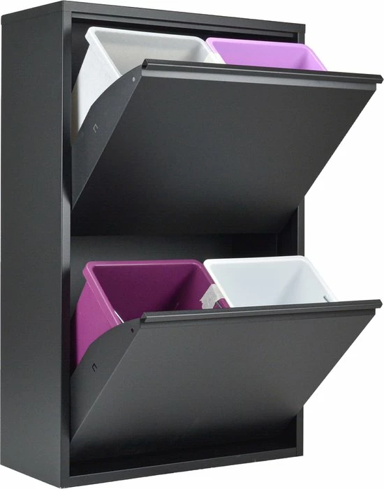 - Veelzijdig: de veelzijdige multifunctionele kast Refina van metaal is een ideale afvalscheider. Maar niet alleen als afvalscheidingssysteem is hij de perfecte aanvulling voor elk huishouden, maar ook als opbergsysteem slaat hij een goed figuur. Dankzij de hoogwaardige afwerking en look is hij geschikt voor bijna alle ruimtes.