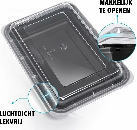 VEILIG VOOR IN DE VRIEZER – Bereid jouw maaltijden van tevoren voor en sla ze op in de vriezer dankzij deze meal prep diepvries bakjes. De prep bakjes zorgen ervoor dat jouw bereide maaltijden hun smaak, kleur en textuur behouden. De plastic bakjes met deksels voorkomen uitdroging, oxidatie en het absorberen van andere geuren uit de vriezer.
